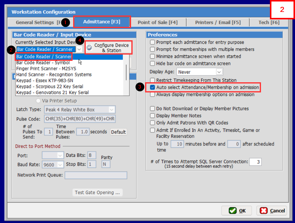 Choose "Bar Code Reader / Scanner" for your "Currently Selected Input Device"