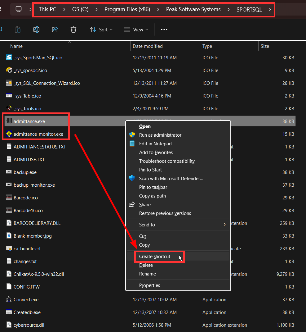 Copy/Paste the "admittance_monitor.exe" into the "SPORTSQL" directory
