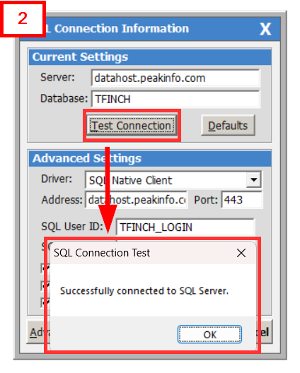 After entering all the connection settings, click [Test Connection] Reference Image 2