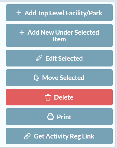 Directly to the right of your facility tree is a list of buttons that you can use to help you create and edit your facilities and manage your facility tree.
