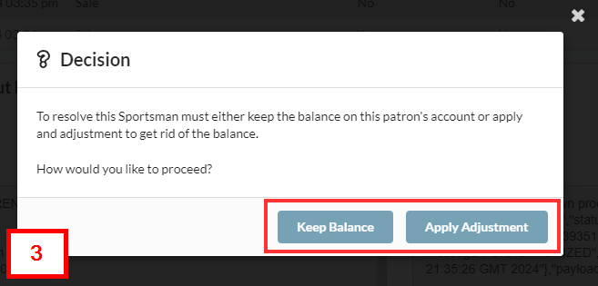 [Apply Adjustment] If you choose to apply an adjustment, Sportsman will automatically remove the sale to reflect what's shown on your payment gateway and create a record of the adjustment for your finance team. Reference Image 3