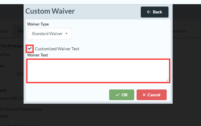 This will open a "Waiver Text" field for you to enter the customer waiver you'd like to use.