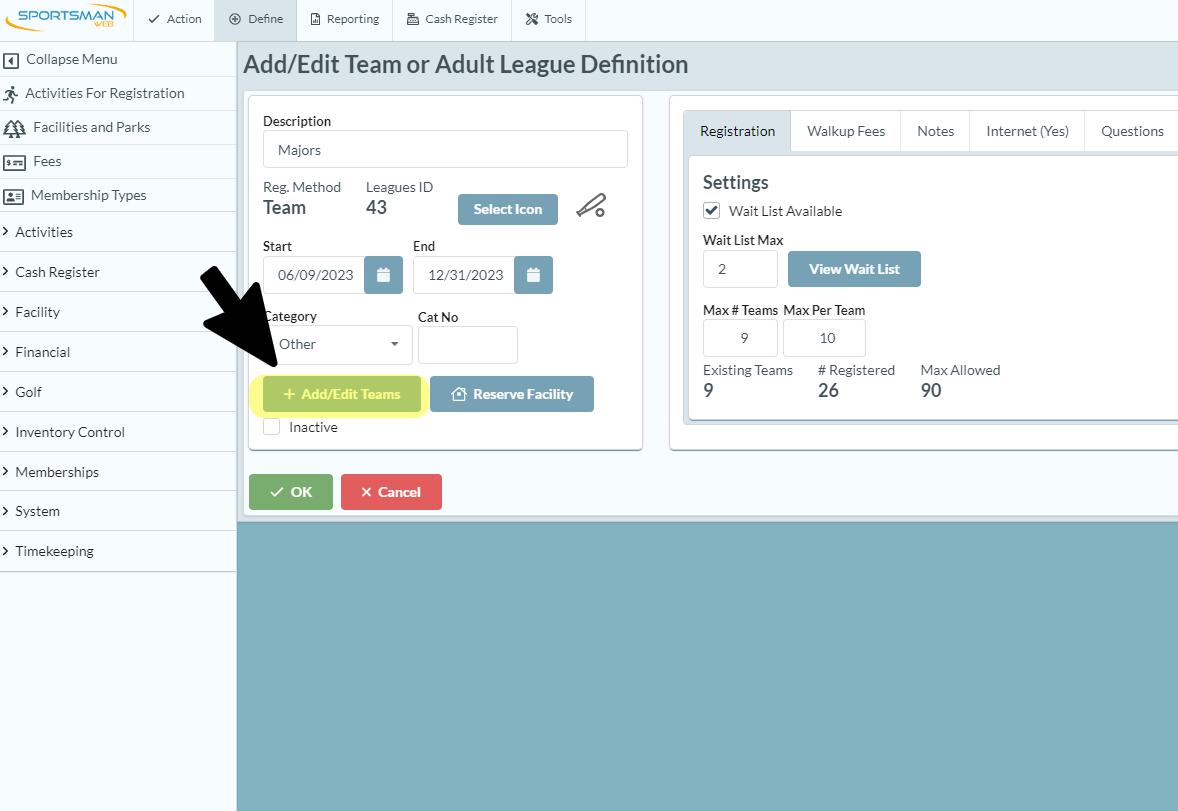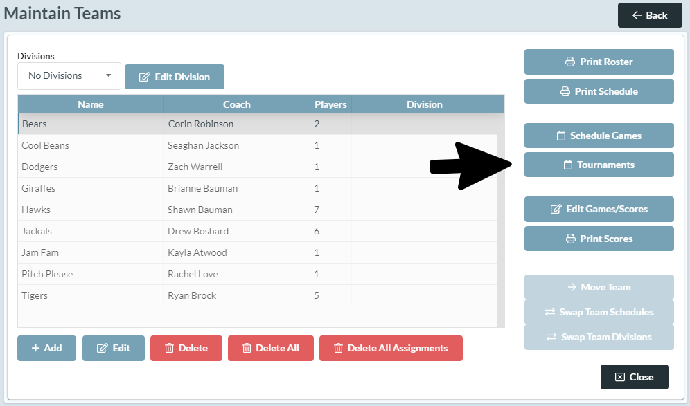 Double Click The Youth or Adult Sport You Want To Build The Schedule or Games For.